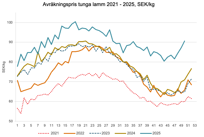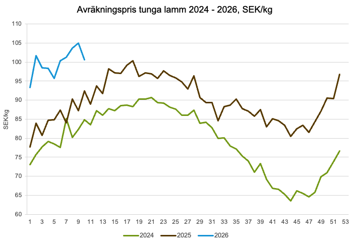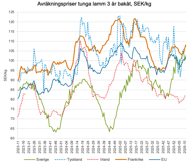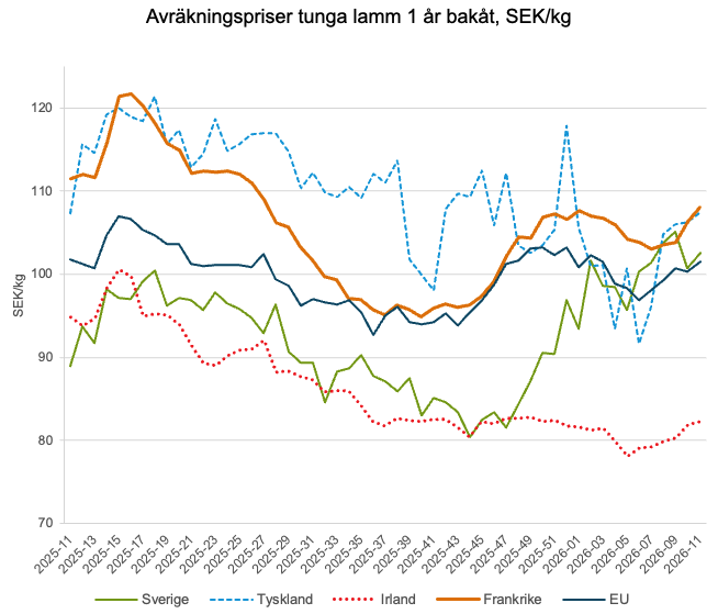 - Sverige rapporterar priser för tunga lamm, liksom många andra länder i centrala och norra EU.