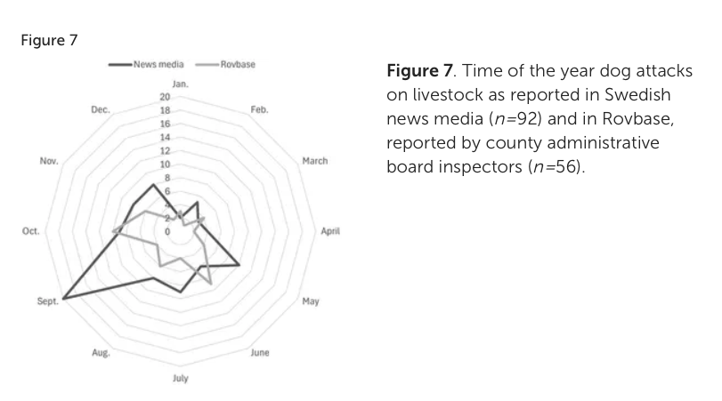 Grafik från artikeln Dog attacks on livestock: insights from Swedish news articles and experiences of farmers and inspectors