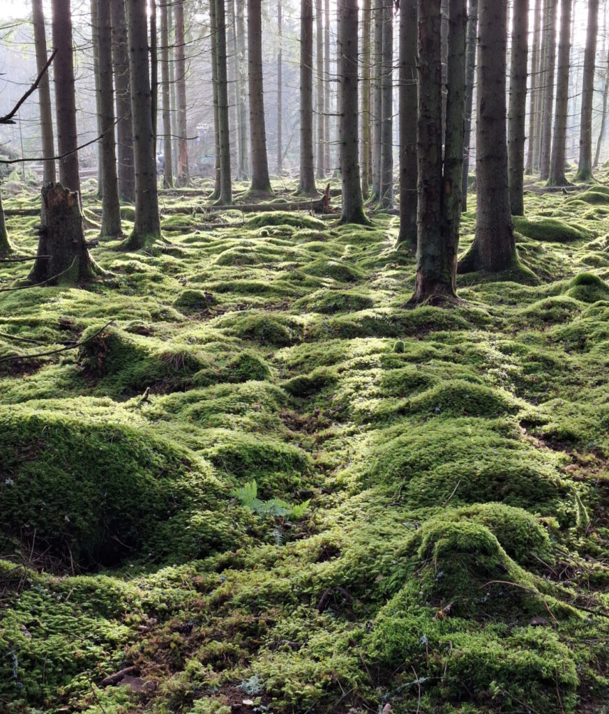 Inte långt ifrån där vi bor finns en sådan skog. Höga granar, mjuk mossa på marken och en fullständig frid. Det känns som att gå i en kyrka med höga pelare. När jag vill må bra går jag gärna en promenad där. Det naturromantiska uttrycket ”skogsbada” är ganska fånigt, men det stämmer faktiskt ganska bra här.