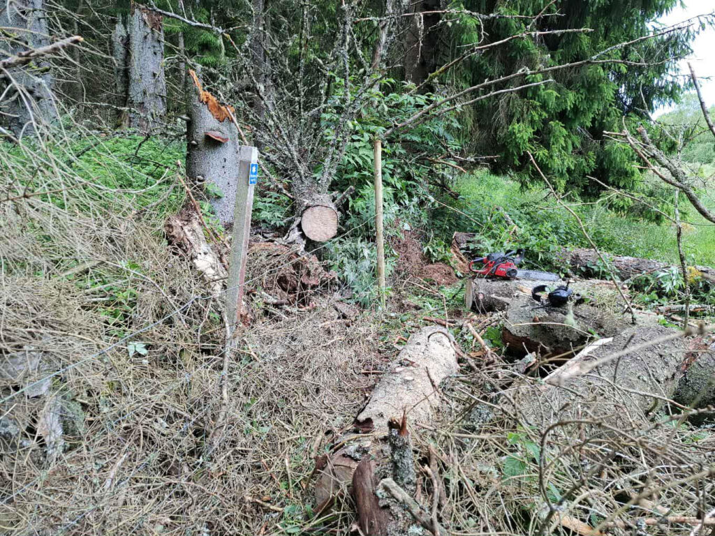 ”Tur är inget man har, tur skaffar man sig!”, påstås PG Gyllenhammar ha sagt någon gång. Och visst är det så. Men ibland kan man bara ”ha” tur! Höststormen Amy drog över landet i början av oktober. I våra trakter hade Amy gjort en stor sväng och drabbade oss från sydost, till skillnad från den förhärskande vindriktningen. Amy fällde flera av de stora döda granarna åt – för mig – rätt håll, det vill säga inåt i beståndet. Så nu är det några granar färre som kommer att mosa mina stängsel i framtiden. Det är första gången jag är nöjd med utfallet av en höststorm!